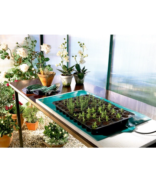 Die Bio Green Wärmeplatte kann auch für die Überwinterung der Pflanzen in kühlen Räumen eingesetzt werden. Sie ist überall einsetzbar: im großen Gartengewächshaus und in der kleinen Wohnung. Mit Thermostat können Sie die optimalen Temperaturen für verschiedene Aussaaten selbst regulieren. Für ein gutes Gedeihen benötigen Ihre Keimlinge, Stecklinge und Jungpflanzen verschiedene Bodentemperatur im Wurzelbereich.