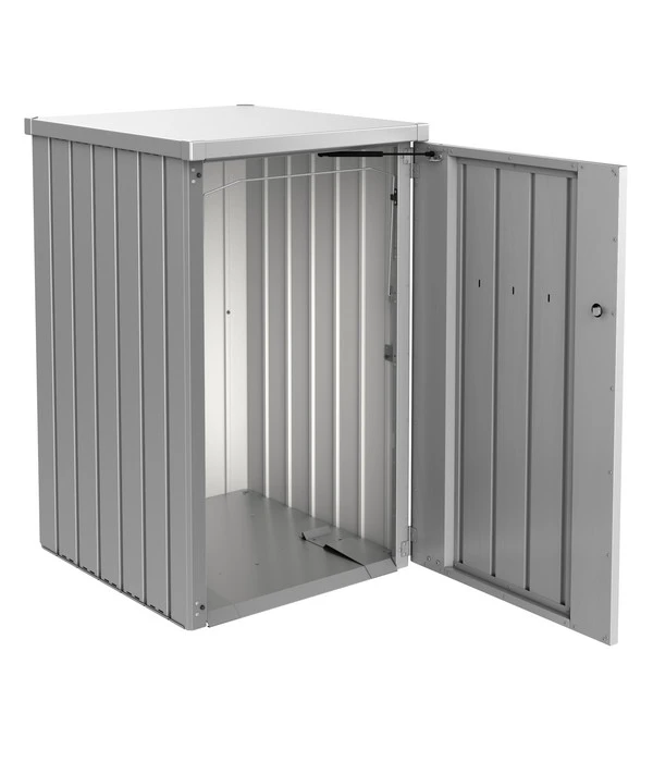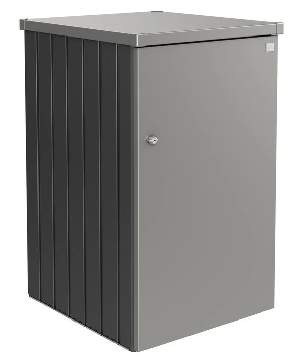 Kennen Sie das auch? Der Blick auf die unansehnlichen Mülltonnen in der Hofeinfahrt lässt Ihre Laune regelmäßig sinken. Das muss nicht sein! Mit der Biohort Mülltonnenbox Alex 3 lassen Sie Ihre Mülltonnen in einer modernen Box in attraktivem Design verschwinden. Das Mülltonnensystem aus robustem und edlem Stahl verschönert jede Einfahrt. Es passt für Mülltonnen mit 120 und 240 Litern Fassungsvermögen und lässt sich mit einem Drehknebel-Zylinderschloss sicher verschließen. Außerdem ist die Mülltonnenbox als modulares System auch nachträglich um beliebig viele Boxen erweiterbar.