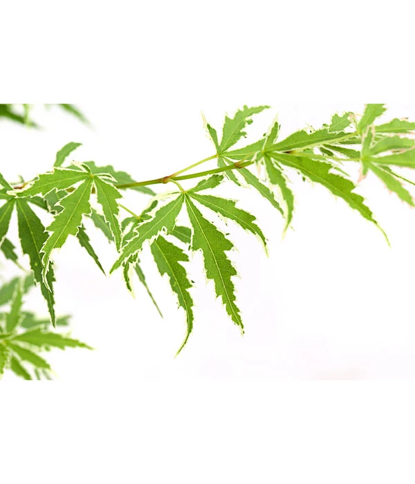Mit seinen tief geschlitzten Blättern und meist sehr attraktiven Wuchsformen ist der Fächerahorn ein Highlight in vielen Beeten und Kübeln. Er präsentiert sich uns in den unterschiedlichsten Variationen und jede Neuentdeckung macht Lust auf mehr. So wie der Fächerahorn ‚Butterfly®‘, der hier gerade mit einer ganz besonderen Eigenschaft Ihre Blicke anzieht: Seine wirklich tief geschlitzten und grob gesägten Blätter schmücken sich mit einem cremefarbenen Rand, der jedes einzelne davon wirken lässt, als hätten sich zarte Schmetterlinge an den Ästen niedergelassen. Der Rand betont die bizarre Blattform zusätzlich und sorgt für ein zauberhaftes Farb- und Lichtspiel, jedes Mal, wenn ein Windhauch in die Krone fährt. Die Blätter sind beim Austrieb im Frühjahr rosafarben und entwickeln dann den cremeweißen Rand, der sich im Herbst in einen auffälligen Magentaton verwandelt. Ein Blickfang von außergewöhnlicher Schönheit, die ihren Grund auch in der feintriebigen, gut verzweigten Wuchsform dieses Gehölzes hat. Bereichern Sie also am besten schon bald Ihren Garten oder einen Kübel auf Ihrer Terrasse mit einem Fächerahorn ‚Butterfly®‘!