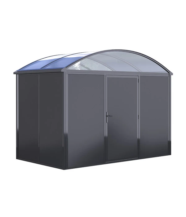 Ordnung halten ist nicht spießig, sondern professionell. Das gilt auch, wenn es um die Aufbewahrung von hochwertigen Gartengeräten und Werkzeugen geht. Deshalb spielen Sie schon länger mit der Anschaffung eines Gartenhauses, haben aber noch nicht das Passende gefunden? Dann nehmen Sie doch gleich einmal den KGT Geräteraum Elbe unter die Lupe. Dieser Garten-Abstellraum präsentiert sich als hochwertige Konstruktion aus stabilen Aluminiumprofilen, die garantiert wetterfest ist. Ebenso wie die Seitenwände, die aus hochstabilen Aluminium-Verbundplatten mit einer Stärke von 4 mm bestehen. Raffiniertes Detail ist das Dach aus transparentem Polycarbonat, das viel Licht ins Innere des Gartenhauses lässt, so dass Sie mit einem Griff alles finden, was Sie gerade für die Gartenarbeit brauchen. Die abschließbare Tür mit den hochwertigen Beschlägen rundet den durchdachten Entwurf des Geräteraums perfekt ab. Doch Stabilität und lange Haltbarkeit sind nur eine Seite der Medaille, die andere heißt Design. Und auch in diesem Punkt lässt der KGT Geräteraum keinen Wunsch offen. Zumindest, wenn Sie ein Freund der modern-funktionalen Formensprache sind. Gönnen Sie sich einen Ordnungshelfer für den Garten, der zugleich Ihren ästhetischen Ansprüchen genügt – gönnen Sie sich den KGT Geräteraum Elbe.