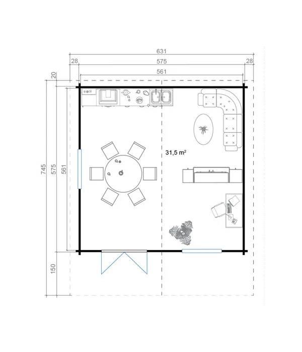 Aus bestem Nordischem Leimholz sind die Fenster und die doppelflügelige Tür, sodass eine ausgezeichnete Funktionalität für viele Jahre garantiert ist. Die Fenster und der Lichtausschnitt in der Tür sind isolierverglast, die Fenster haben einen Einhand-Dreh-/Kipp-Mechanismus und besitzen einen Aluminium-Wasserschenkel.
