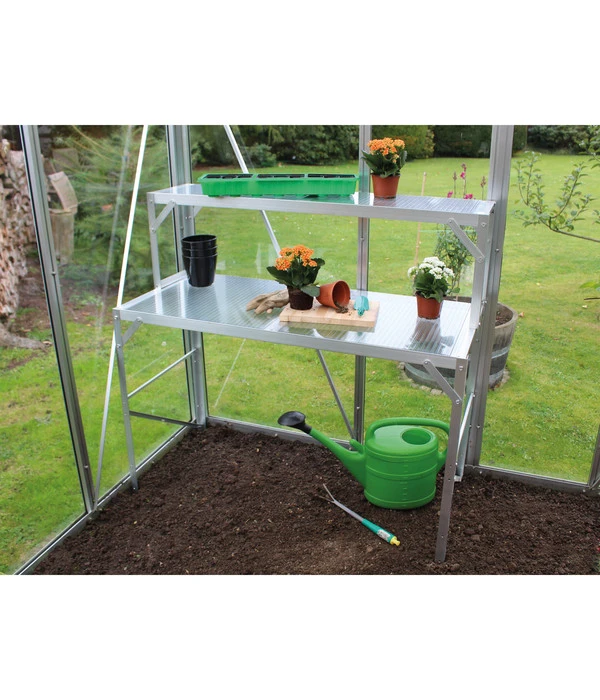 Wenn Sie regelmäßig einen Arbeitstisch nutzen, kennen Sie das Problem: Die Stellfläche an sich ist zwar groß – Sie könnten aber doch hier und da ein bisschen mehr Platz gebrauchen. Werkzeuge verteilen sich auf dem Tisch, Gartengeräte werden regelmäßig abgelegt und Kisten stapeln sich ebenso. Hier bietet Ihnen der Vitavia Alu-Tischaufsatz eine hervorragende Möglichkeit, schnell und unkompliziert ein effizienteres Arbeiten zu gewährleisten, von mehr Platz zu profitieren und sofort für eine bessere Ordnung zu sorgen.