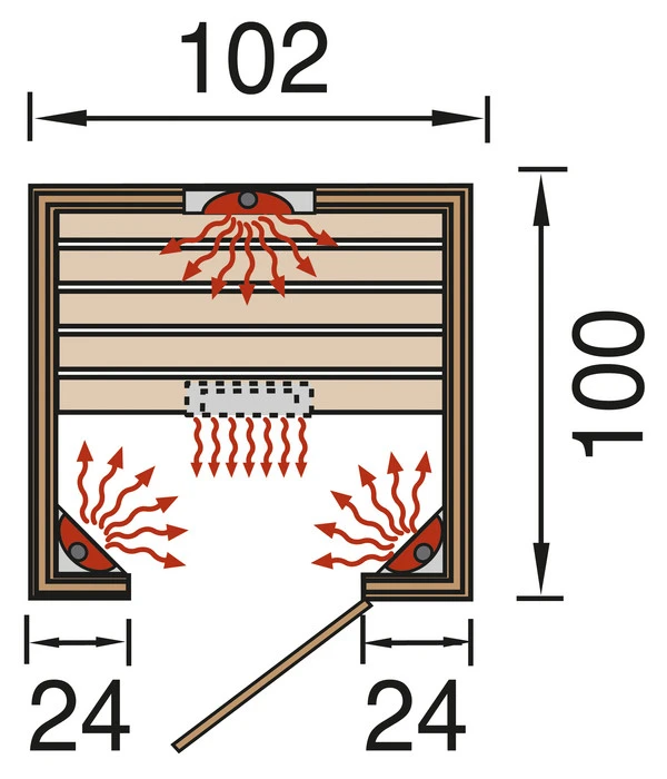 Im Lieferumfang zur Weka Infrarotkabine Vaal ist neben dem Korpus aus vorgefertigten Holzelementen, die sich einfach und schnell montieren lassen, auch alles andere dabei. Die moderne Ganzglastür aus Sicherheitsglas mit innenliegendem Magnetverschluss; die 45 cm tiefe, stabile Sitzbank und die integrierte Deckenleuchte. Zu den hochwertigen Keramikstrahlern erhalten Sie außerdem eine elektronische Steuerung. Und damit Ihnen der Aufbau leicht von der Hand geht, erhalten Sie zur Weka Infrarotkabine Vaal auch das erforderliche Montagematerial und eine ausführliche Aufbauanleitung.