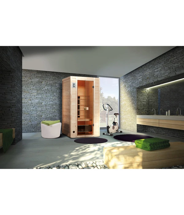 Wer eine angenehme Wärme sucht, die bis unter die Haut geht, dem aber die Temperaturen in einer klassischen, finnischen Sauna zu heiß sind, für den ist eine Wärmekabine wie die Weka Infrarotkabine Vaal das Richtige. Die integrierten, hochwertigen Keramikstrahler sorgen für gezielte Wärmeabgabe am Rücken, an den Beinen und von vorne. Dabei können Sie Ihre persönliche Wohlfühltemperatur zwischen 30 und 80°C wählen. Noch ein Vorteil einer solchen Wärmekabine: Die Aufheizzeiten sind im Vergleich zu einer konventionellen Sauna viel kürzer und der Stromverbrauch ist deutlich geringer. Und außerdem braucht die Kabine auch deutlich weniger Platz, sodass sich leichter ein Plätzchen für sie finden lässt. Lassen Sie sich bald von der wohligen Wärme in der Weka Infrarotkabine Vaal verwöhnen – Sie werden garantiert begeistert sein!