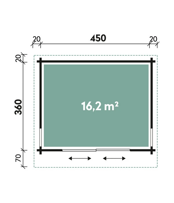 16,2 m², 44 mm Wandbohlen, Pultdach, Iso-Glas